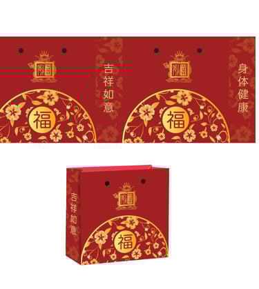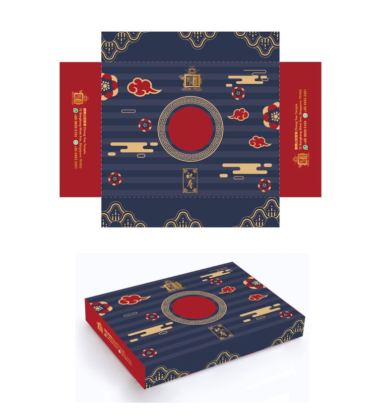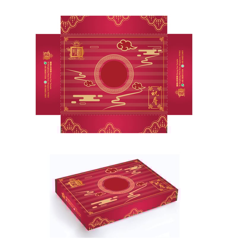 OVERVIEW: There was a request from a Buddhist Temple in Singapore that required designs for the upcoming Chinese New Year, as Chinese New Year is an occasion where many goodies are being given out, they wanted something that looked good, somewhat traditional and something that stills carries the chinese-styled design. They required a box in which to place dried goods in it, with a circle cut out in the middle, to showcase the 发糕, along with a carrier for Mandarin Oranges.
